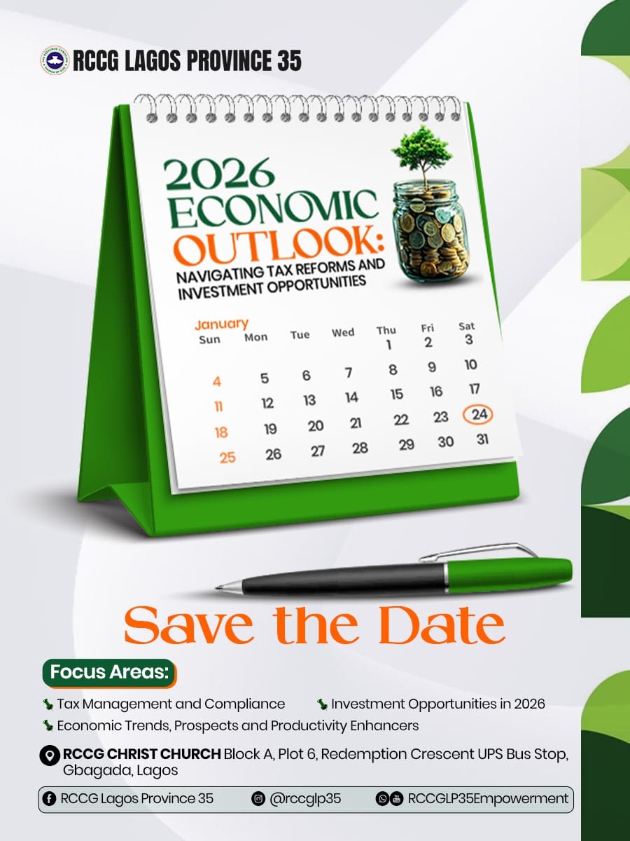 Join RCCG Lagos Province 35 for a strategic empowerment session designed to equip you with the knowledge needed to thrive in the evolving economic landscape. As we step into 2026, understanding the nuances of tax reforms and identifying hidden investment gems is not just an advantage – it is a necessity.